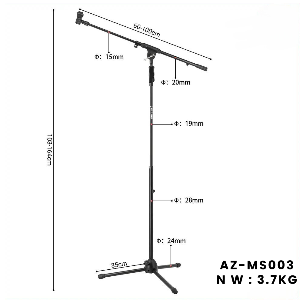 Aurzart AZ-MS003 Adjustable Boom Tripod 3.7KG Microphone Stand