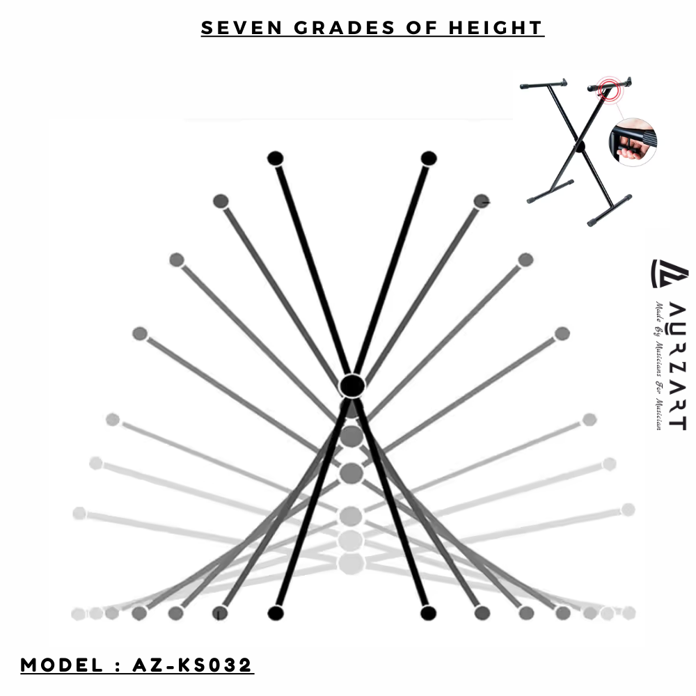 With its adjustable design, the AURZART AZ-KS032 stand enables you to customize the height according to your preference and playing style. Whether you prefer sitting or standing while playing, this stand effortlessly adapts to your needs, promoting optimal comfort and posture. Say goodbye to discomfort and hello to seamless playing sessions with this ergonomic and user-friendly keyboard stand.