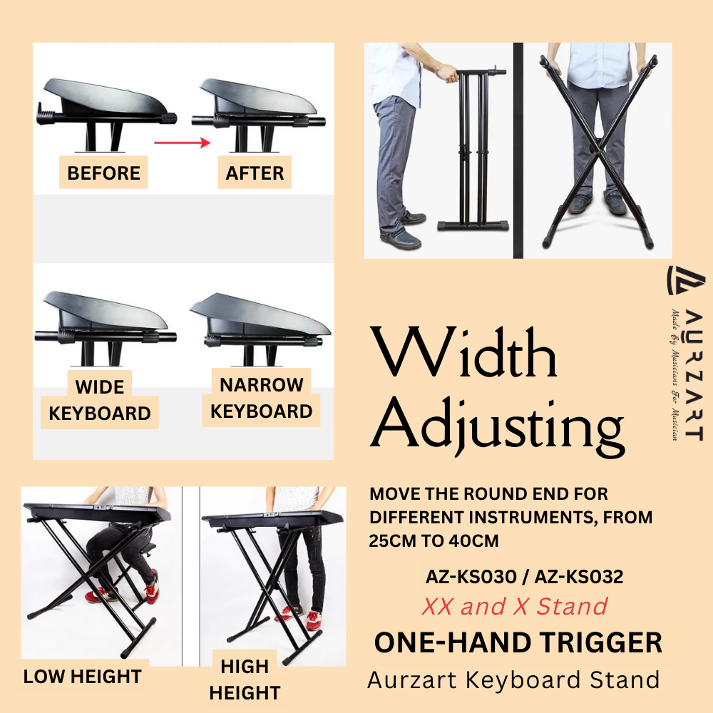 Don't settle for the ordinary. Choose the AURZART AZ-KS032 Classic Adjustable Keyboard and Piano Single-X-Shape Stand and take your musical performance to new heights. Elevate your playing experience today!