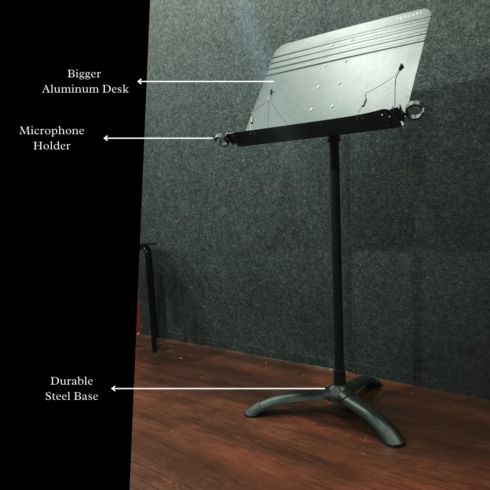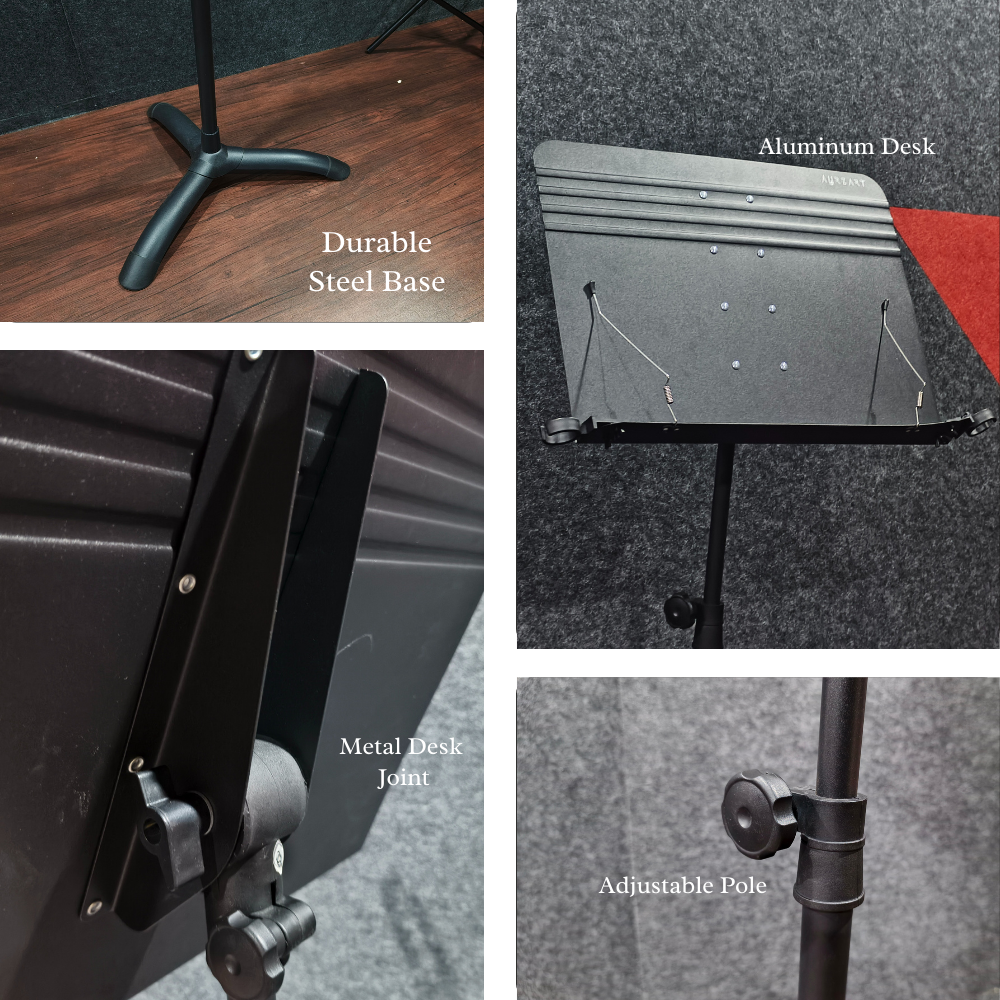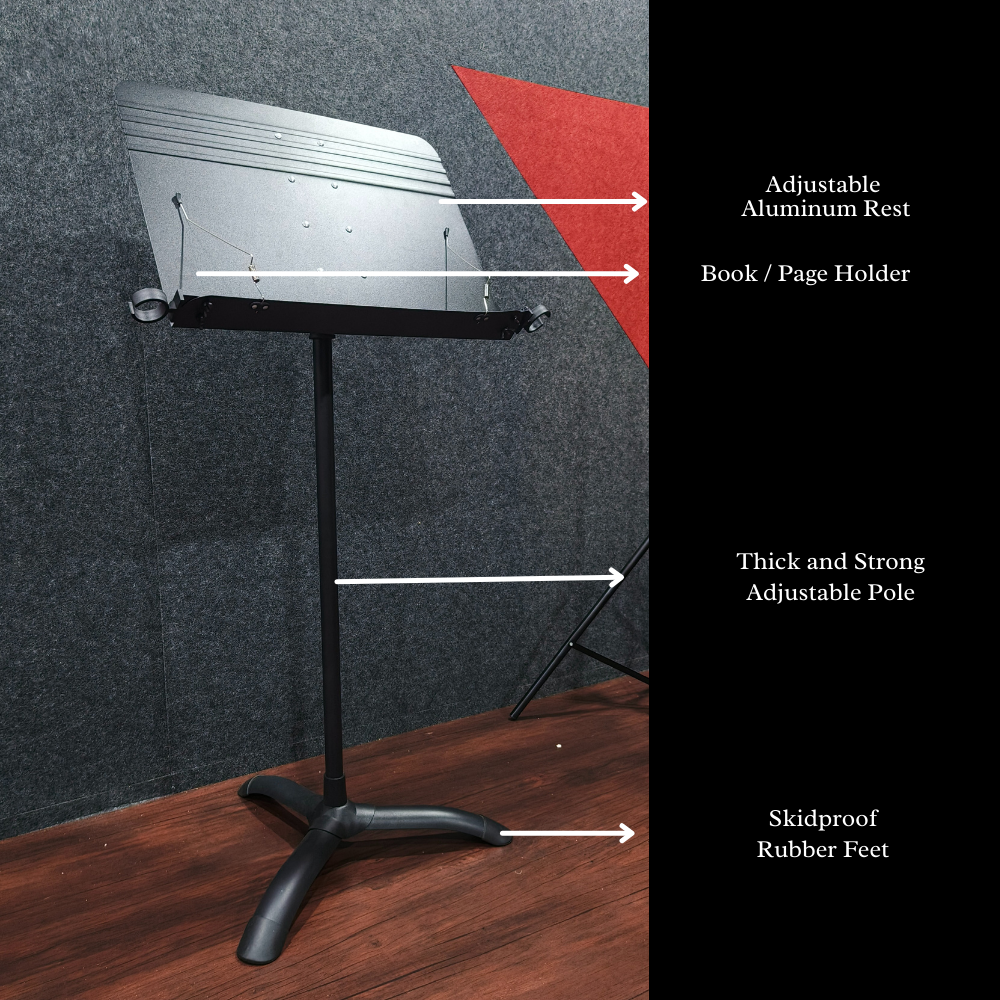 The AURZART AZ-MUS020 Music Stand offers a reliable and sturdy platform for musicians to hold sheet music during practice and performance. Designed with adjustable height and angle settings, it ensures optimal viewing comfort. Its durable build supports various sheet sizes, making it a versatile choice for musicians seeking precision and convenience in their setup.