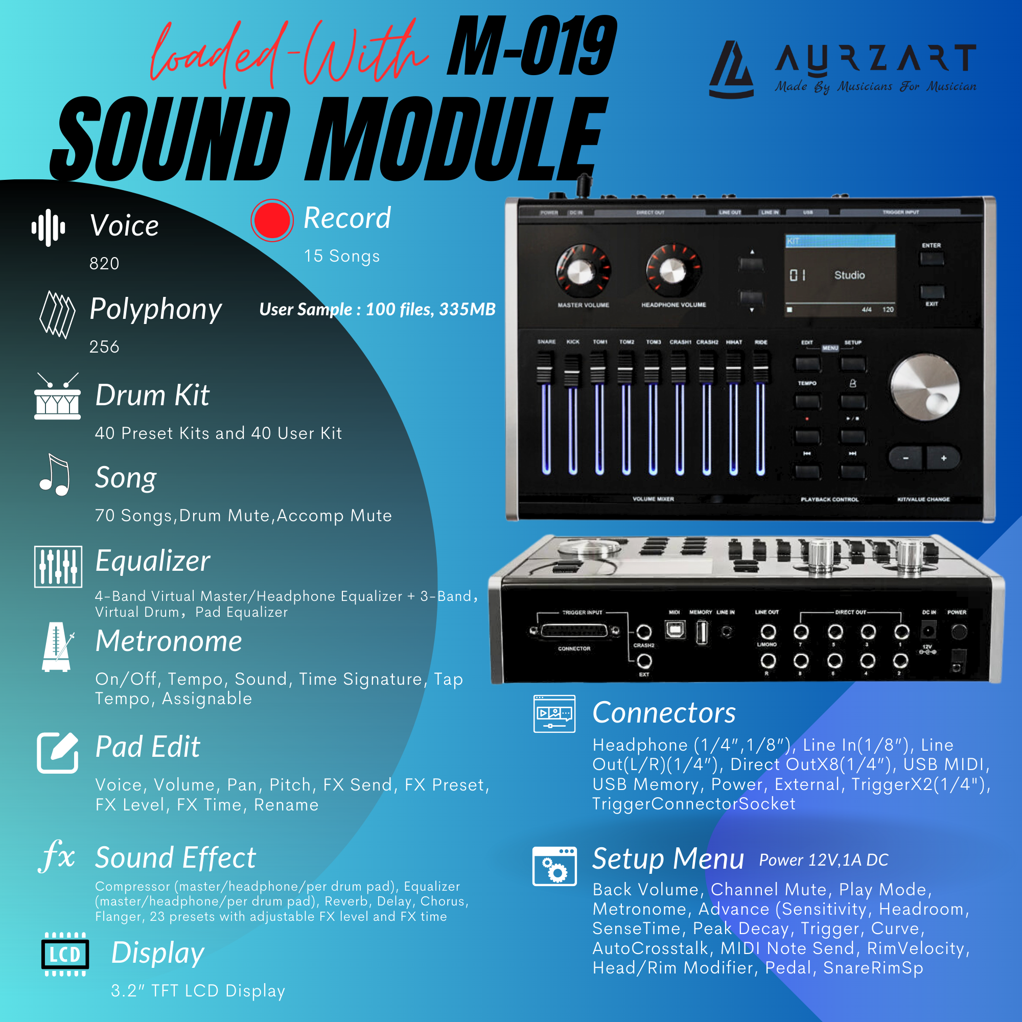 The AZ-ED2000 features a built-in sound module that provides a wide selection of high-quality drum and percussion sounds. From classic acoustic drum kits to electronic and experimental sounds, drummers can explore a vast range of tones
