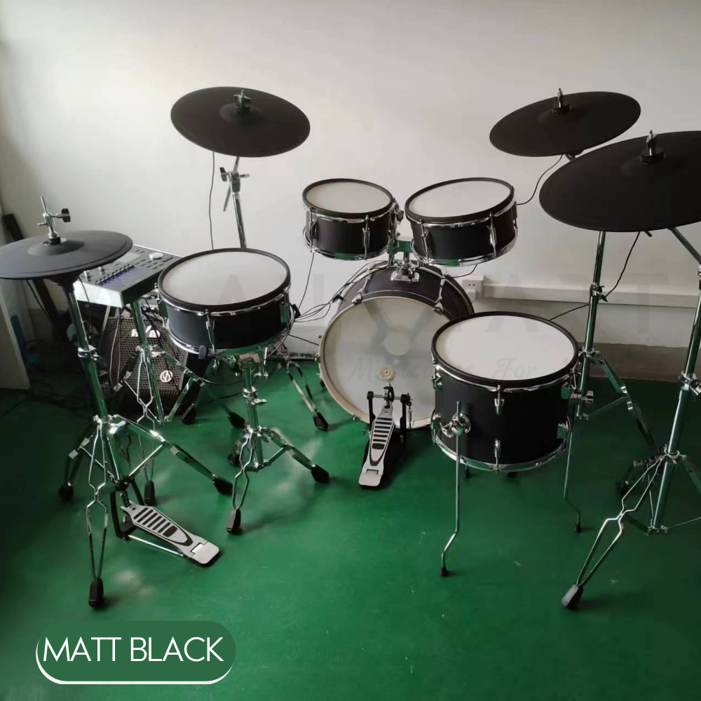 With this configuration, drummers can enjoy a comprehensive drumming experience that combines the realistic feel of acoustic drums with the added benefits and features of electronic drums.